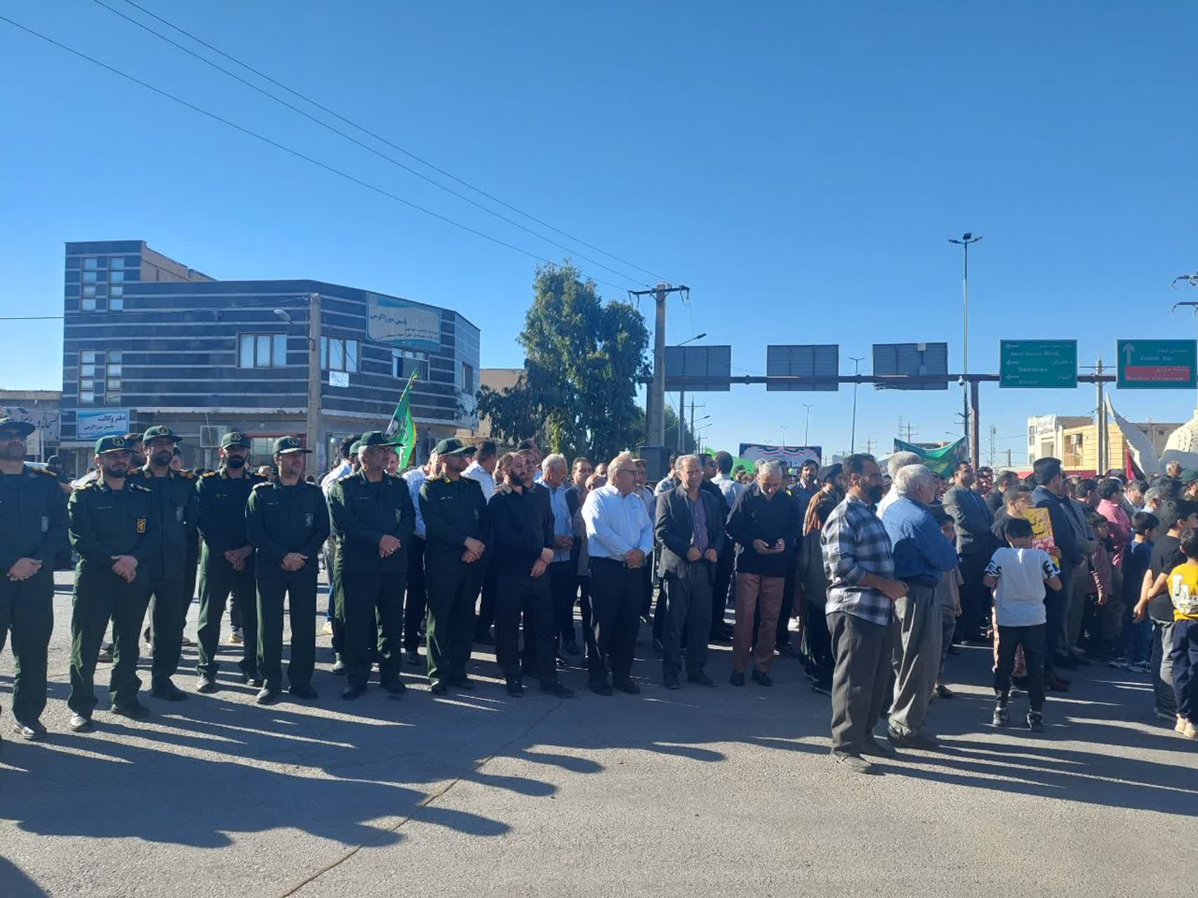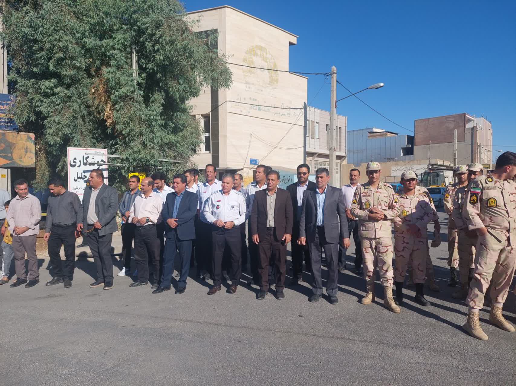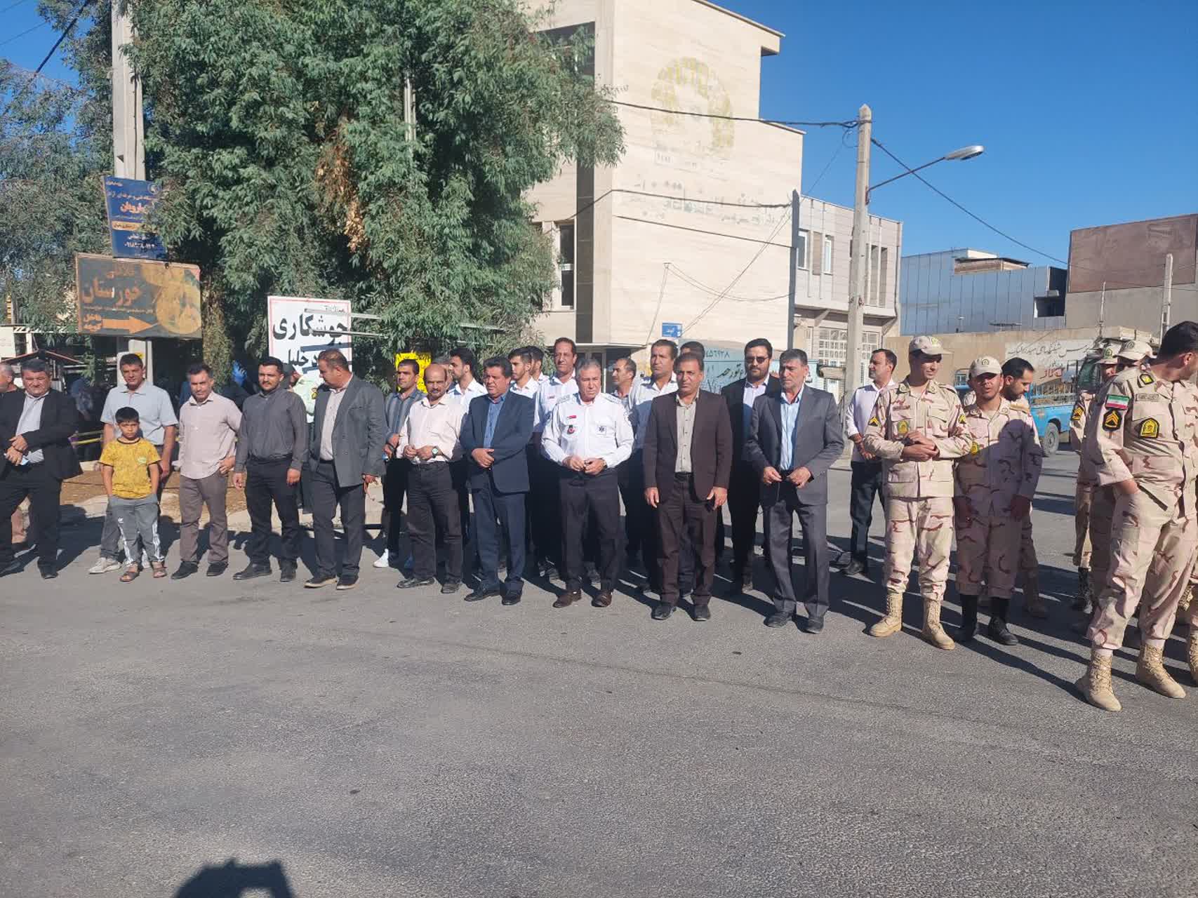در این مراسم،آقای مهندس مجتبی کریمی، سرپرست شبکه بهداشت و درمان،اقای برجی، رییس بیمارستان امام حسین مهران و اقای ملکی، رییس پایگاه فوریتهای پزشکی، همراه با جمعی از مدیران، پرسنل پرستاری، کادر درمانی، اداری و خدماتی، با در دست داشتن پرچم پرافتخار جمهوری اسلامی ایران و پلاکاردهای گرامیداشت این روز، عزم راسخ خود را در ادامهی راه شهدا و پاسداری از دستاوردهای انقلاب اسلامی به نمایش گذاشتند.