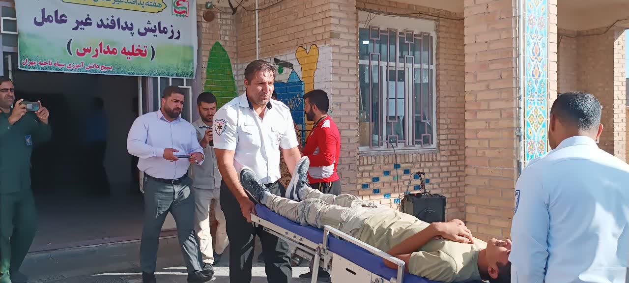این رزمایش بههمت سپاه پاسداران انقلاب اسلامی ناحیه مهران و با مشارکت ارگانهای شبکه بهداشت و درمان شهرستان مهران، فوریتهای پزشکی، آتشنشانی، هلال احمر، نیروی انتظامی و آموزش و پرورش، در دبیرستان پسرانه حافظ واقع در شهرک اسلامیه انجام پذیرفت.